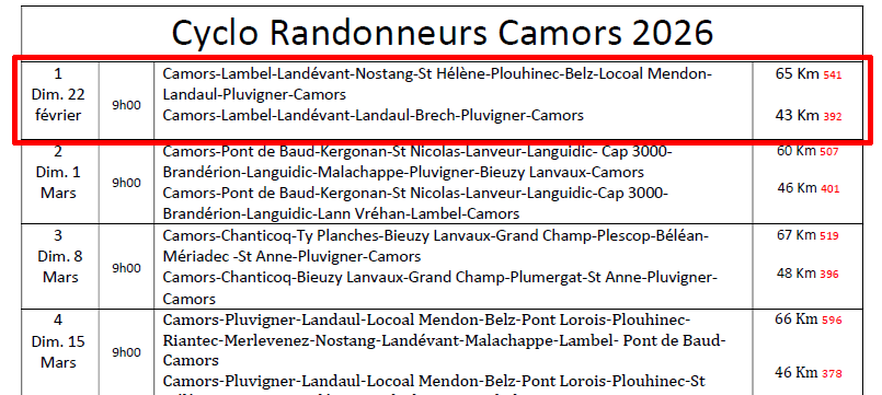 Circuits de la semaine
